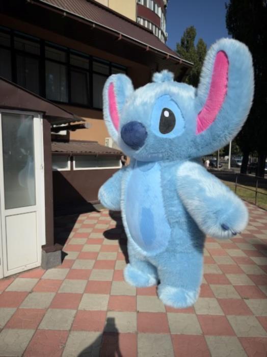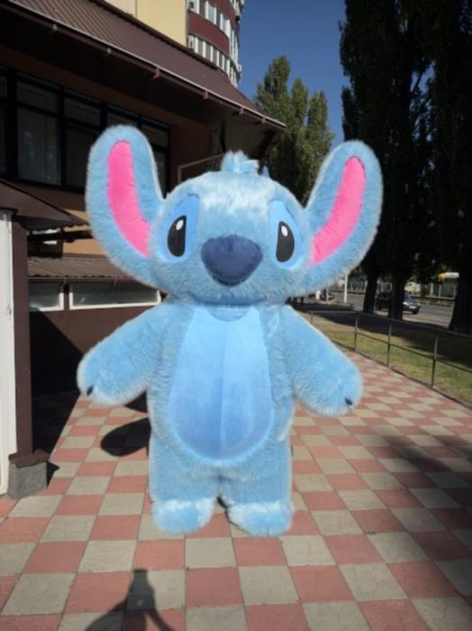 Костюм моментально разрешает почувствовать себя увеличенной версией любимого синего пришельца. Как и Стич, надувной костюм — нечто неземное, любимый персонаж детей появится во всей красе.