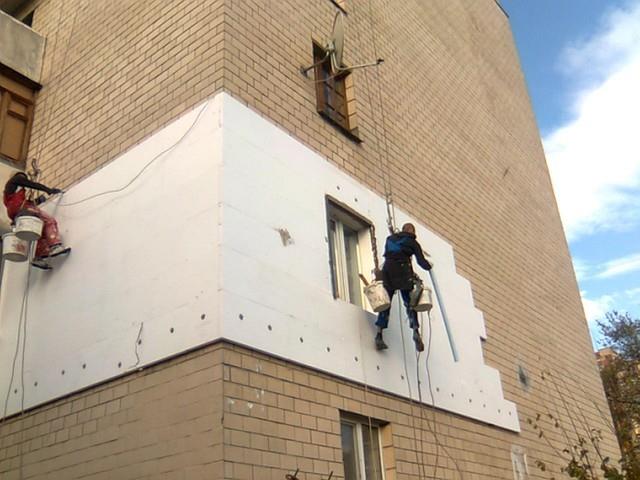 поклейка пенопласта, штукатурка и покраска. Работа на высоте.