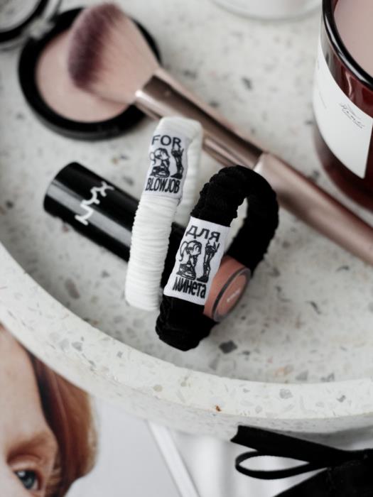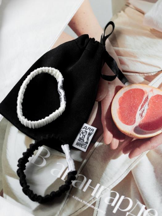 За 400 грн вы получите брендированный мешочек в котором есть белая и черная резинка для волос.